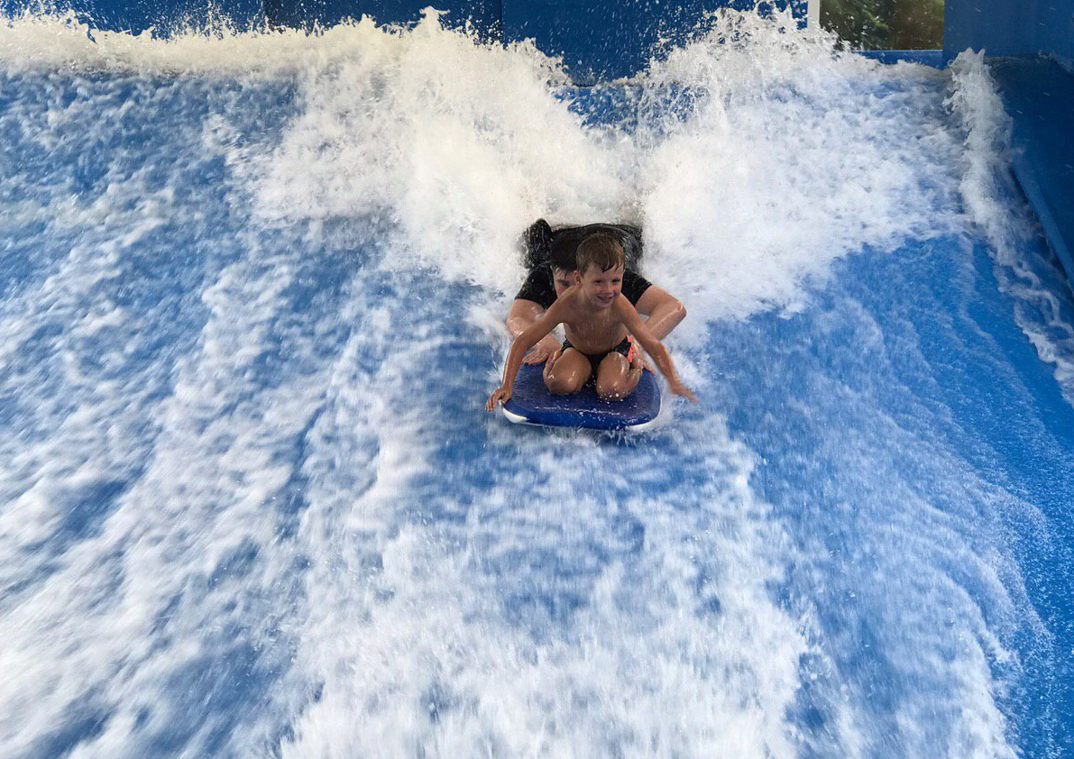 и дети будут в восторге от аттракциона «Искусственная волна», где можно летом и
