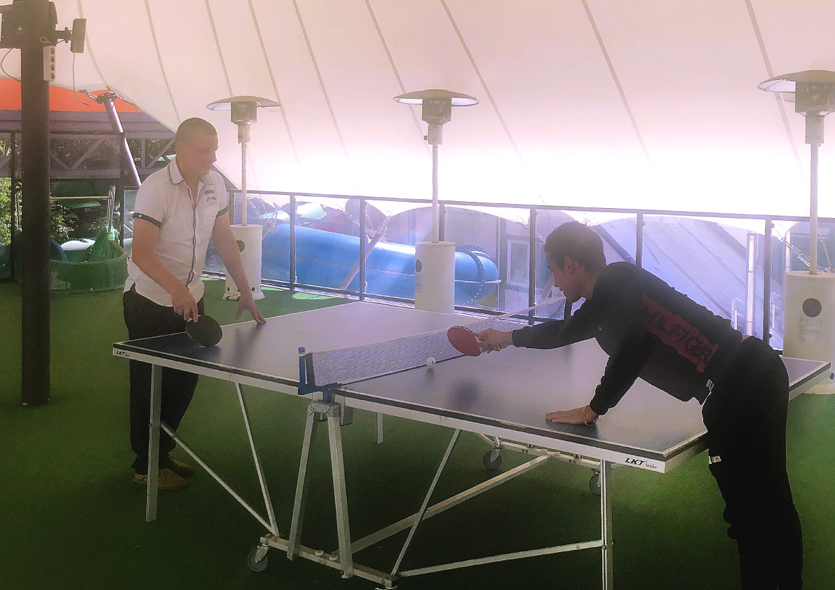 В нашем загородном комплексе есть все условия для игры в пин-понг (настольный теннис). Пинг-понг стремительная, интересная и спортивная игра, которая тренирует усидчивость, ловкость, координацию и реакцию. Игра хорошо тренирует сердце и тело, постоянная концентрация увеличивает нагрузку.